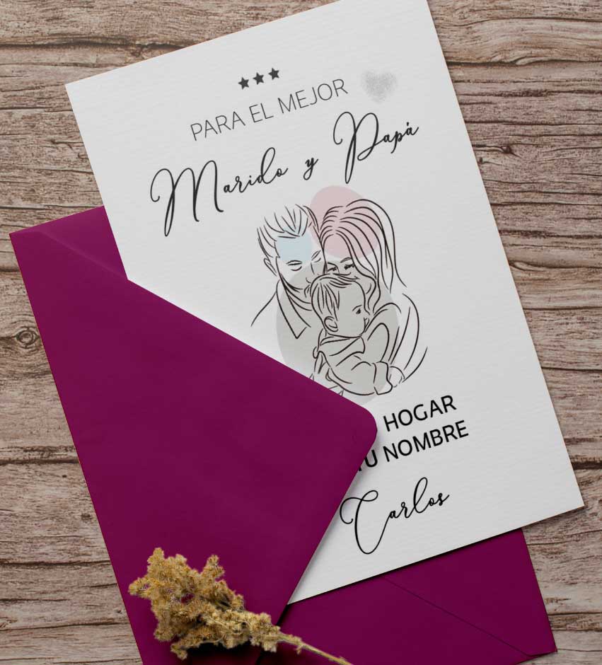 Una tarjeta de felicitación para dedicar al padre y marido de tu vida, emotiva, perfecta para crear un recuerdo inolvidable.