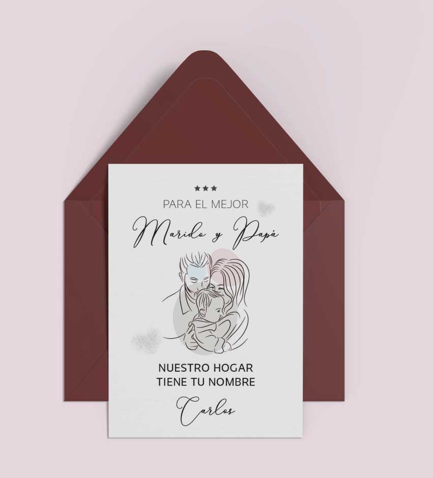 Si estás buscando una tarjeta de felicitación para padres personalizada y emotiva, perfecta para sorprender a tu marido en el día del Padre, su cumpleaños, el primer Día del Padre o cualquier evento especial, esta opción está diseñada para tocar el corazón, es perfecta para sorprender al marido y papá que lo da todo por su familia combinando emoción y elegancia.