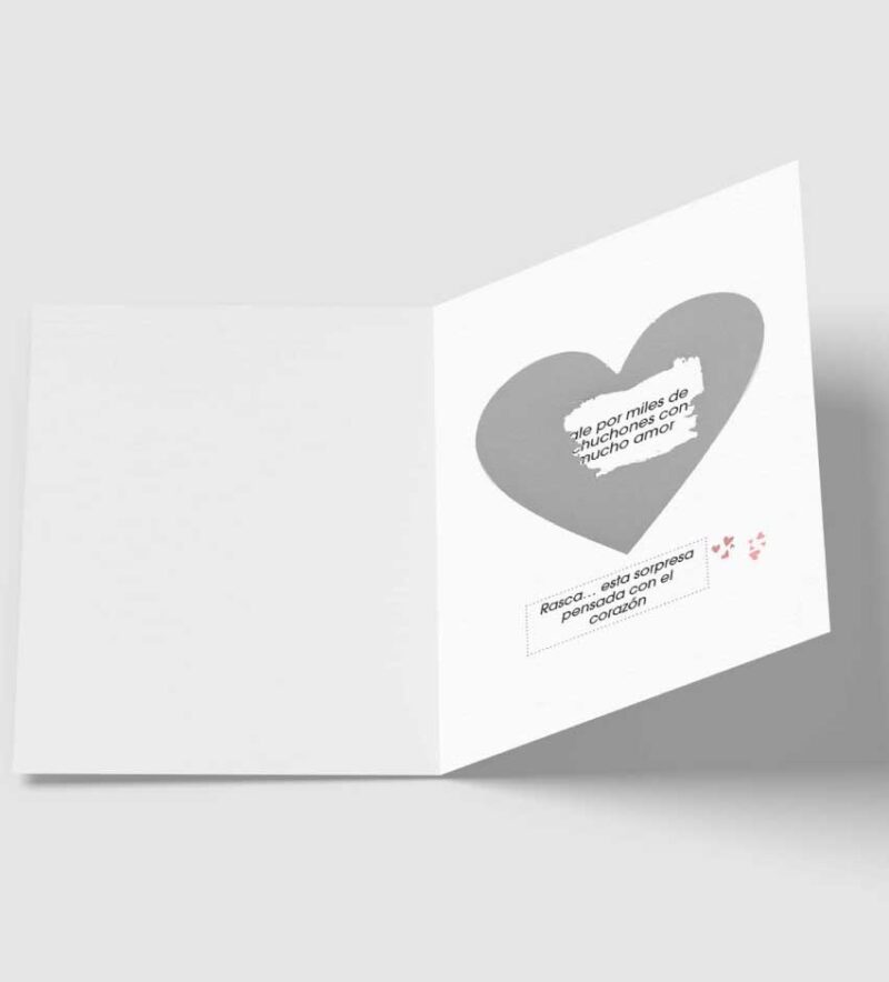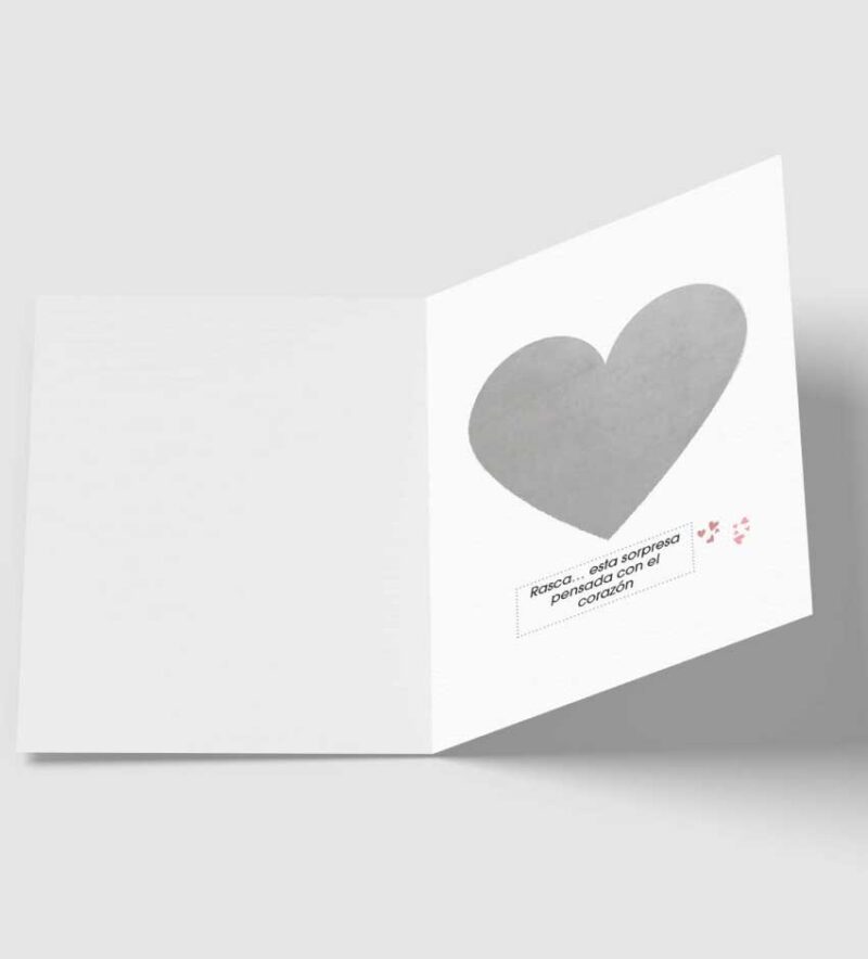 El rasca que convierte la emoción en sorpresa: en el interior de la tarjeta, un corazón rasca revela la sorpresa elegida 🎁.